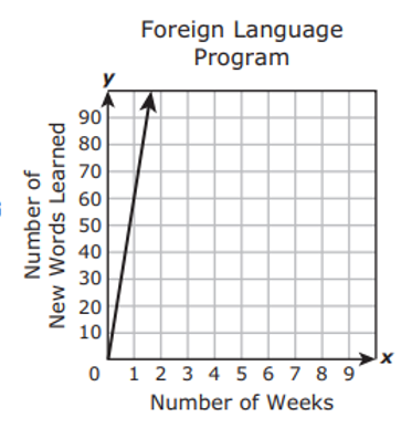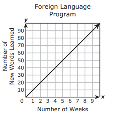 A student in a foreign language program learns 15 new words each week. Which graph best represents the relationship between x, the number of weeks the student has been in the program and y, the total number of new words the student has learned?