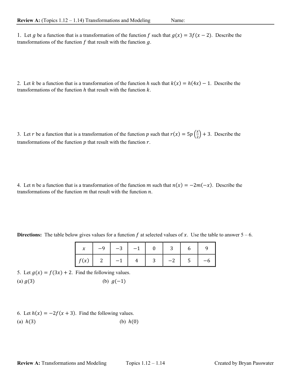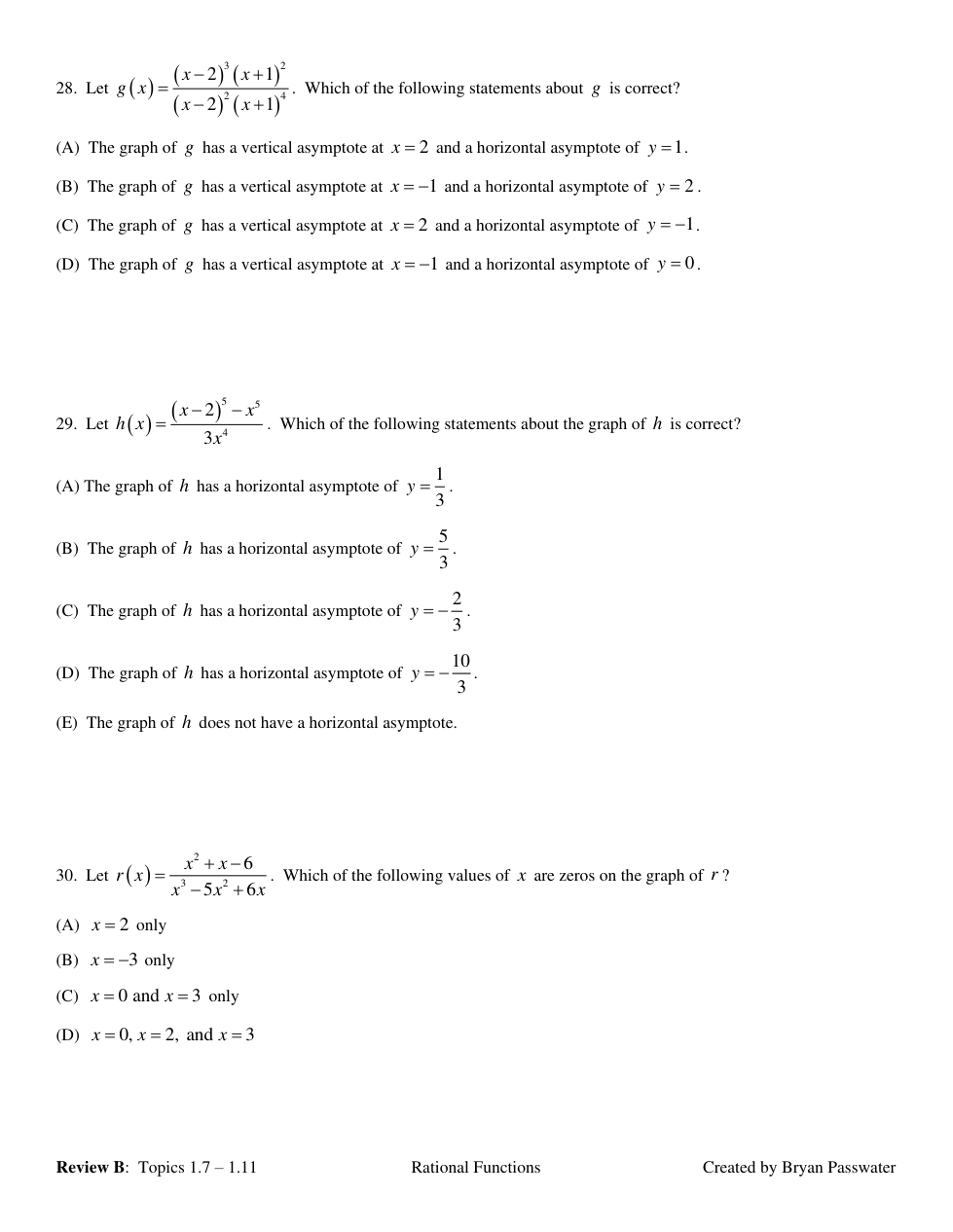 REVIEW for Topics 1.7-1.14