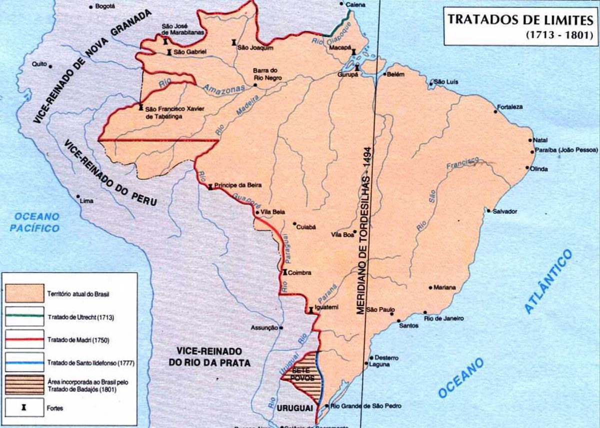 Organize cronologicamente os eventos que são pertinentes às mudanças territoriais brasileiras no período colonial.