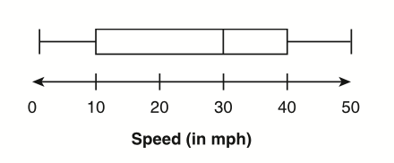 A police department captured 30 speeds on radar and organized their data in the box plot shown. What can be inferred from the data? Select all that apply.