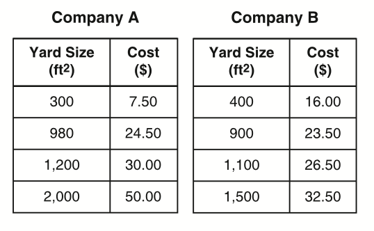 Company A’s and Company B’s landscaping costs are shown in the tables
