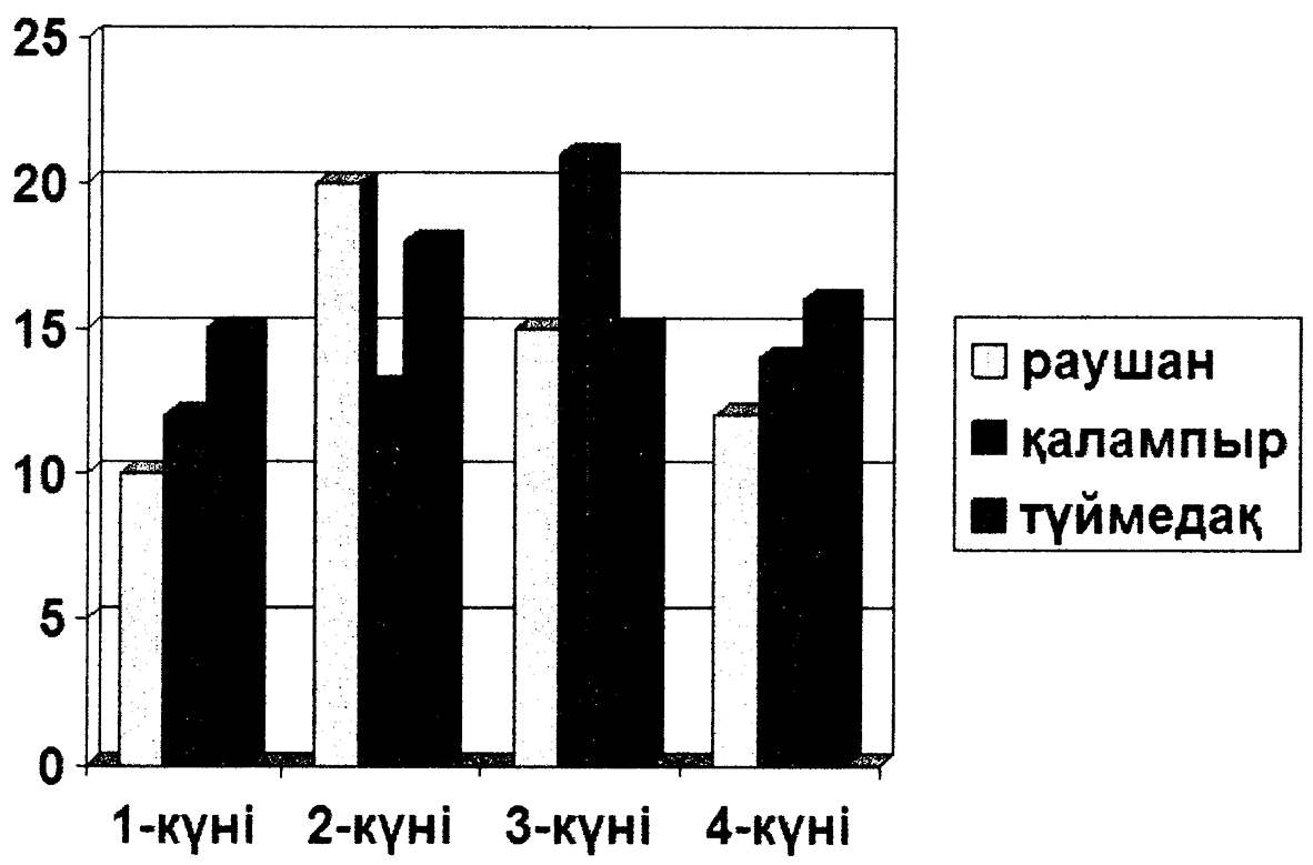 Төрт күнде отырғызылған гүлдердің диаграммасы көрсетілген. Қай күні гүл ең аз отырғызылғанын табыңыз.
