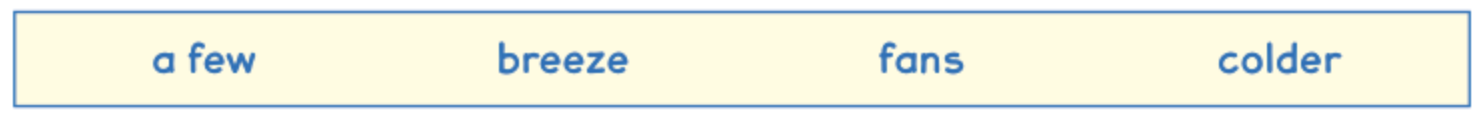 Previous ways of cooling air, such as handheld and electric _______ , provided a _______ , but they didn’t make the air _______ , and they could relieve only _______ people at a time.
