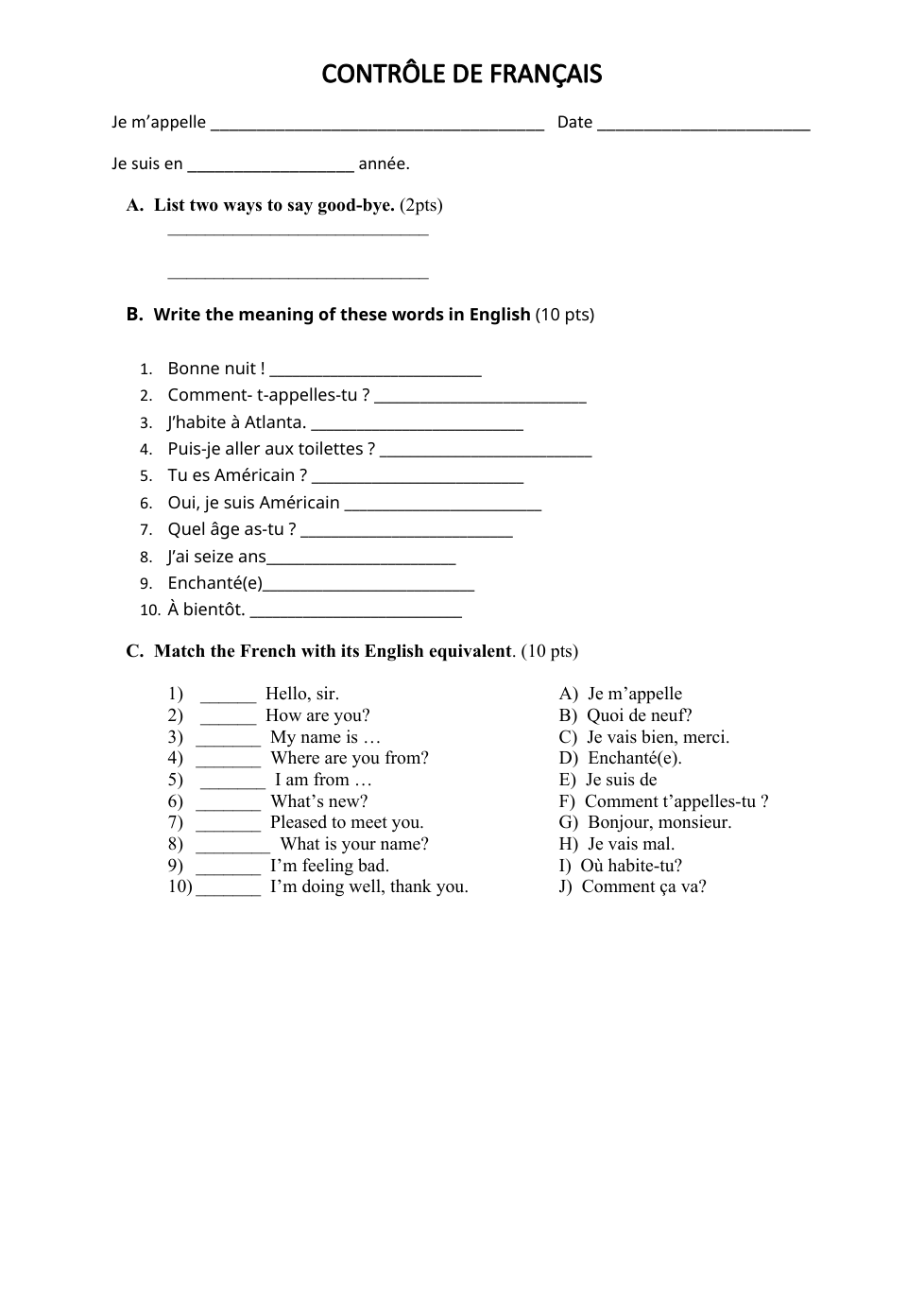 Bonjour, Monsieur. | arrow_right_alt | My name is |