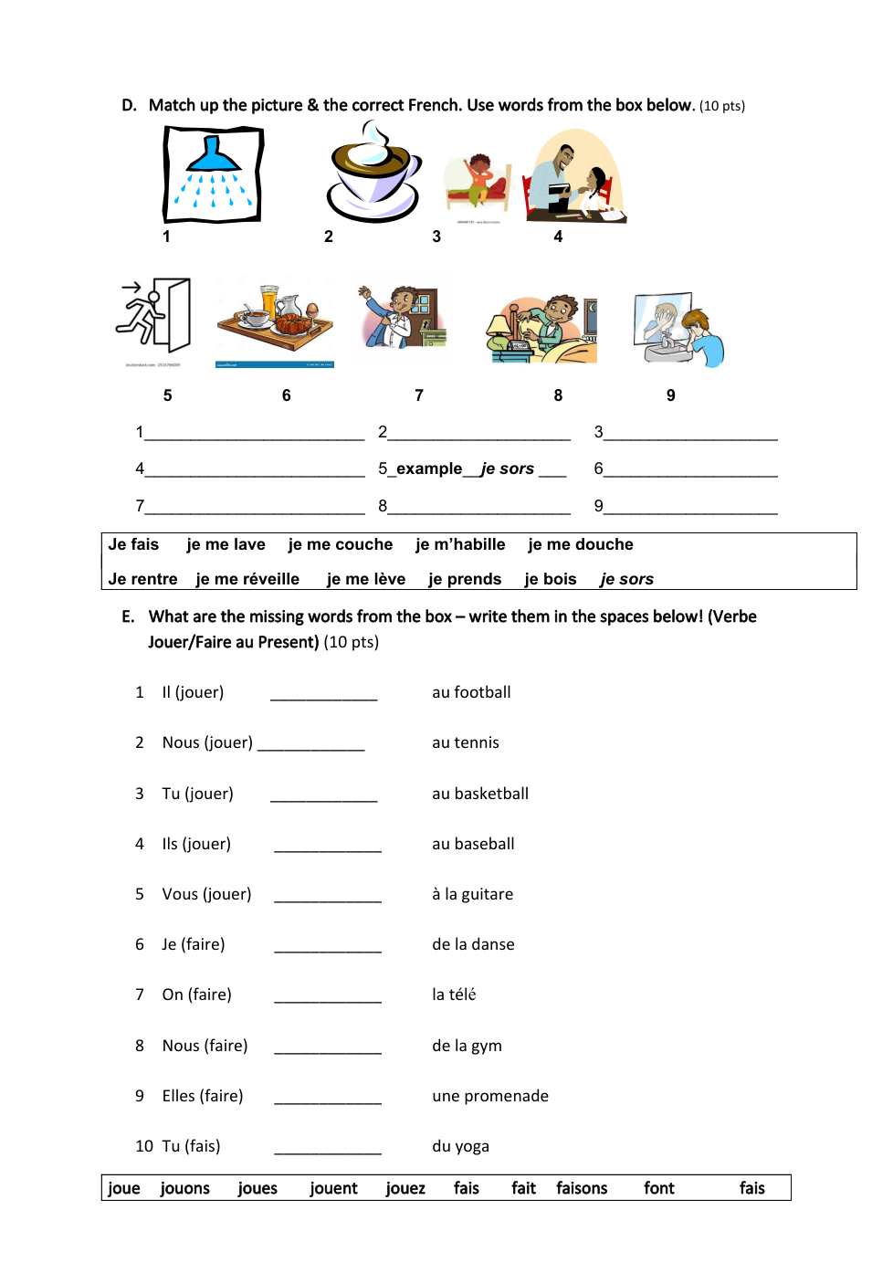 This assignment is to evaluate your understanding of sports and hobbies in French and the verb jouer (to play) and RE/IR verbs to discuss these topics.