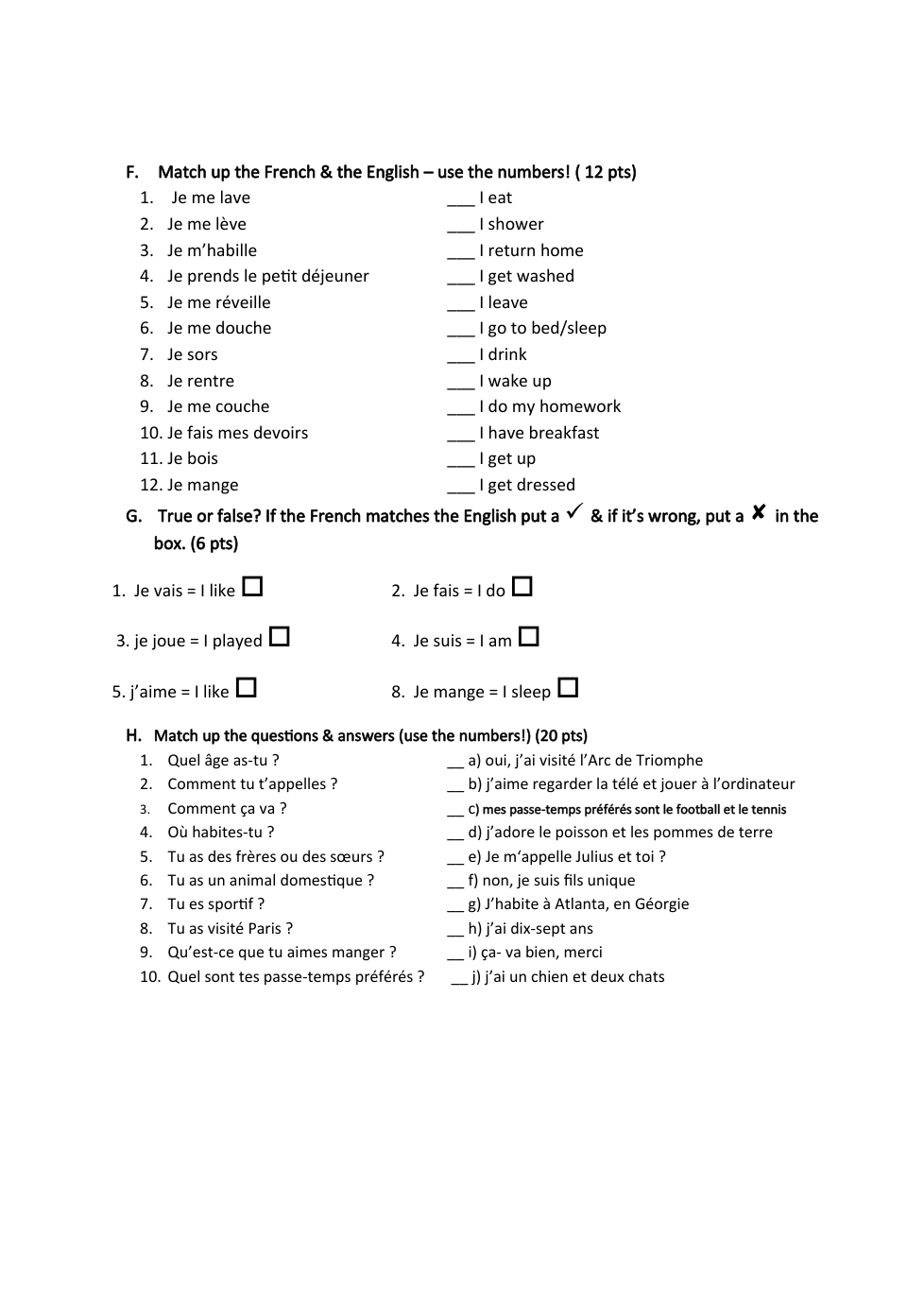 French Intro/Sports and Hobbies/ Likes/dislikes