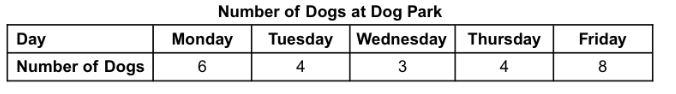 Kate counts the number of dogs she sees at a dog park each day for 5 days. She makes the table to show how many dogs she sees.