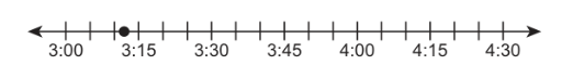 The point on the number line shows that Malcolm started riding a train at 3:12 in the afternoon.