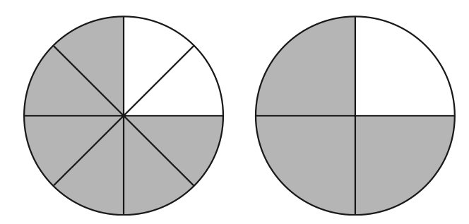 In each of the two equal-sized circles below, the shaded part represents a fraction.