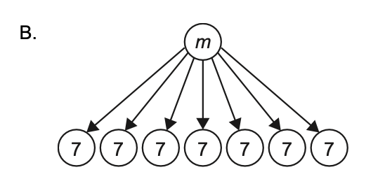 Create a multiplication or division equation, being sure to include an unknown that represents the array. Explain how your equation represents the array. Then use your equation to create a word problem.