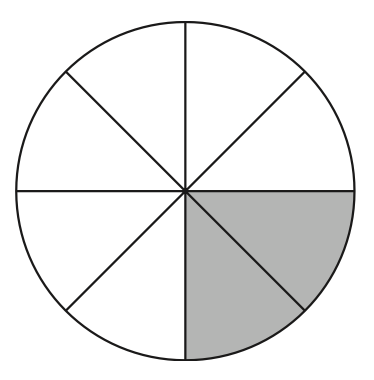 The Khan family orders a pizza to share. The pizza is cut into 8 slices. Select the two options that show the part of the whole that is represented by 1 piece of the pizza.