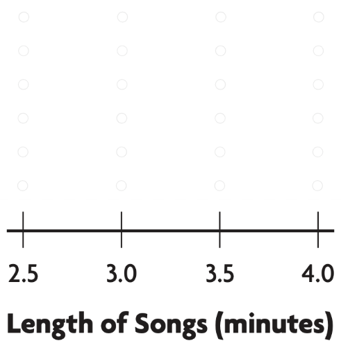 Colton has a list of the length of each song in his favorites playlist. Make a dot plot of the data.