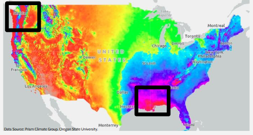 Prediction: Why is there less precipitation further inland in the Pacific Northwest than further inland from the Gulf Coast?