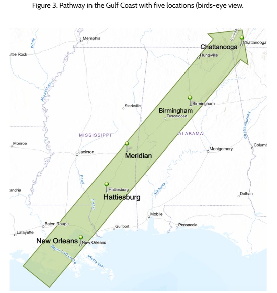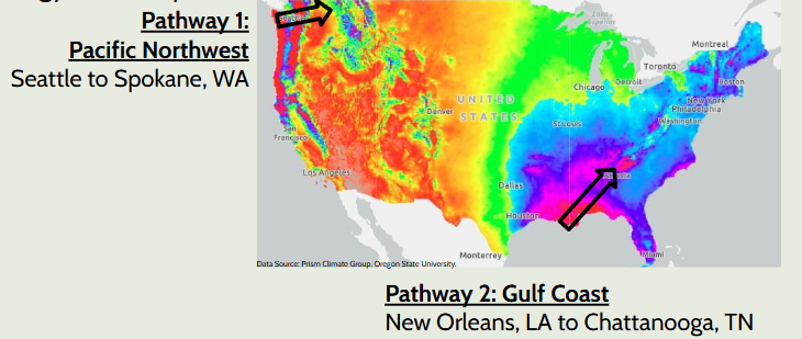 What do you notice about the cross section of the Gulf Coast pathway? What is different from the Pacific Northwest Pathway?