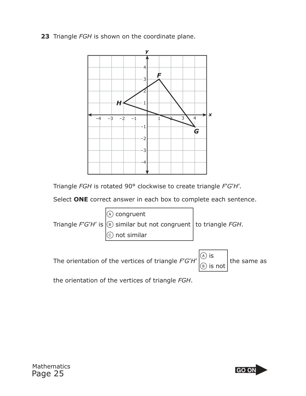 The orientation of the vertices of triangle F'G'H' __________ the same as the orientation of the vertices of triangle FGH.