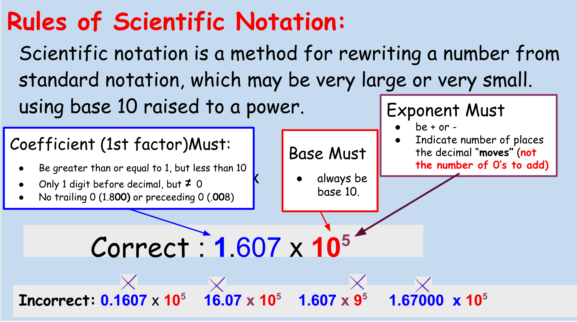 4) 2nd factor in scientific notation must ALWAYS be a base of 10.