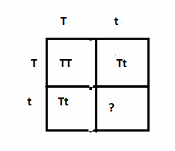 In the Punnett Square below, what belongs in the missing square T = tall and t = short