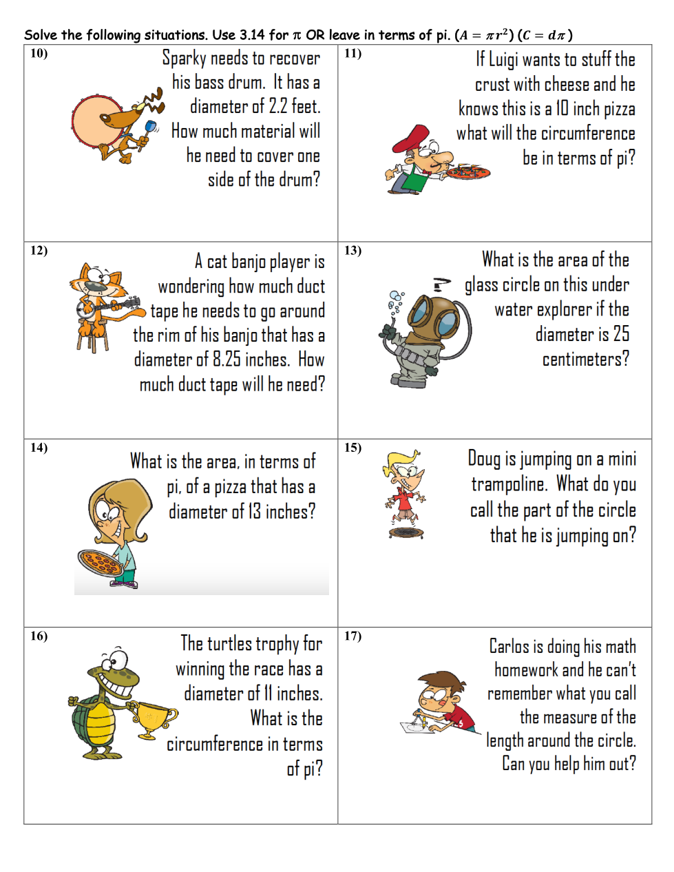 I will know I am successful when:*I can find the circumference and area of a circle when given one or the other.