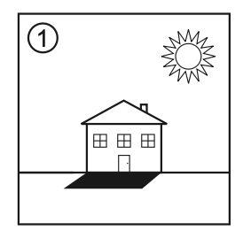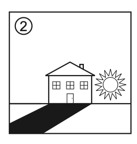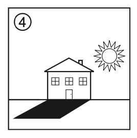 A student takes a picture of the shadow of a house at four different times during one day. The pictures are shown below, but they are not in order according to the time they were taken.