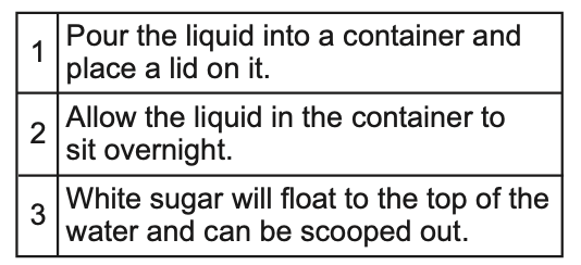 The student makes a mistake and mixes the white sugar in the hot water instead of mixing the baking soda in the hot water. Which investigation setup would best help the student separate the white sugar from the water?