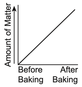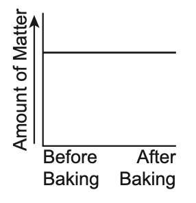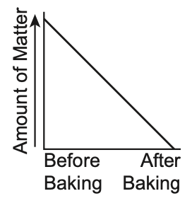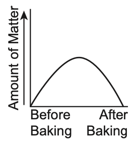 Before baking the cookies, the student measures the weight of the prepared cookie dough. Which graph best represents how the amount of matter inside the oven is affected by the cooking process?