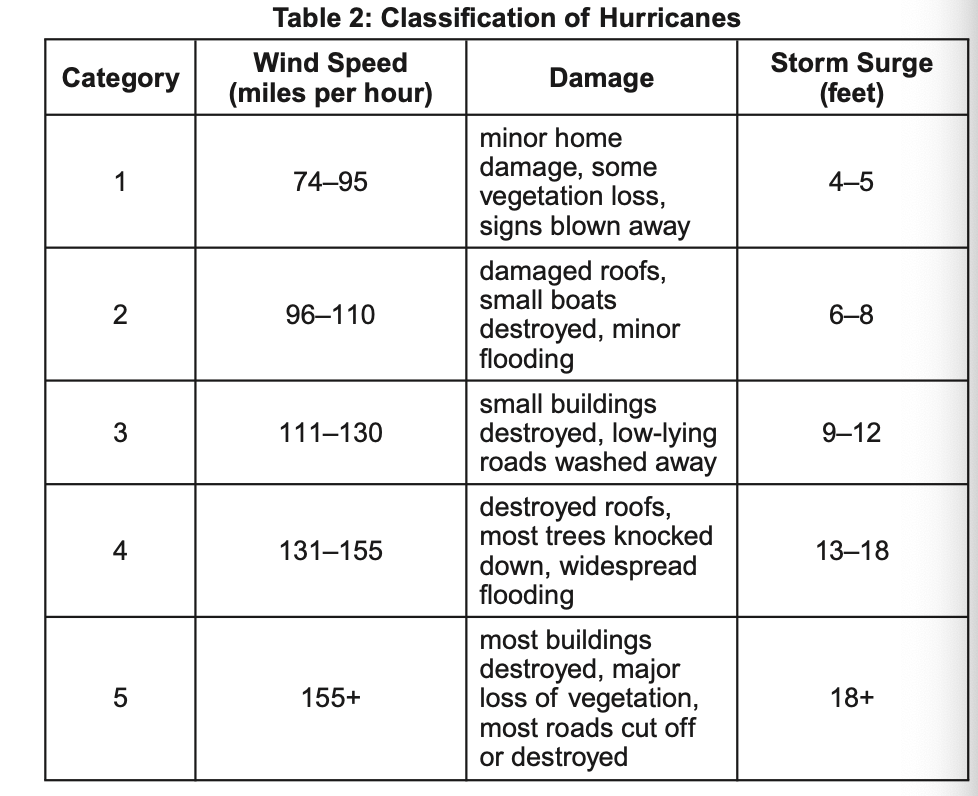 There was not a system in 1900 to classify the strength of a hurricane. Table 2 shows how hurricanes are classified today.