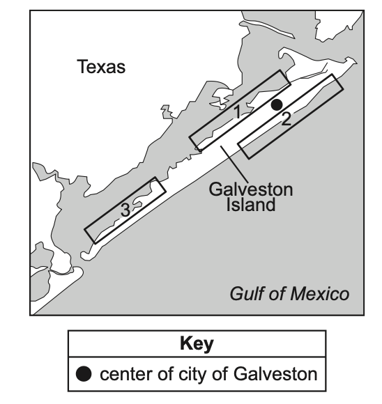In the chart below, circle the area where the people of Galveston most likely built the seawall in 1904. Next, circle the explanation that best supports this decision.