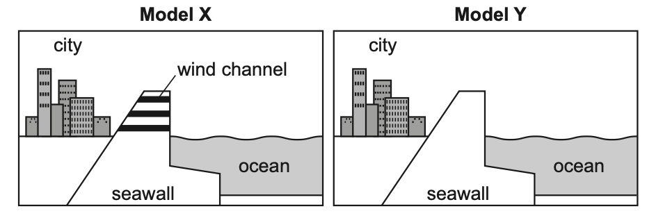 seawall models to possibly reduce the impacts of a hurricane on a nearby city.