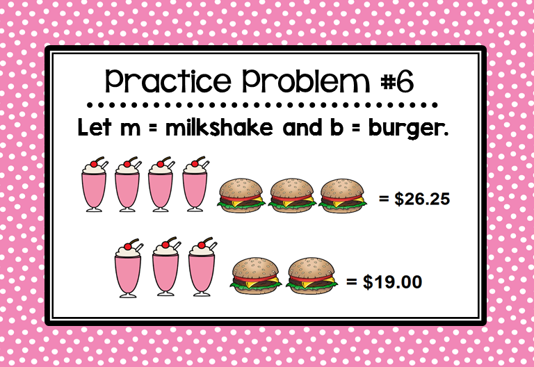 Which system of equations is represented in the diagram above? Select the 2 equations you would use (remember m is the cost of each milkshake and b is the cost of each burger).