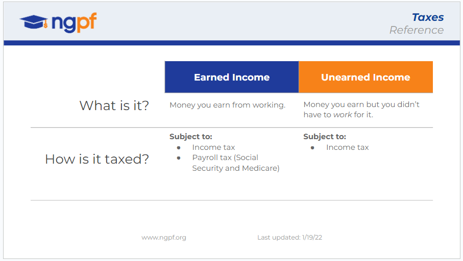 - Differentiate between earned and unearned income and their tax implications