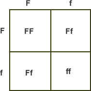 The Punnett Square below shows the potential allele combinations for an offspring whose parents have freckles. Freckles are a dominant trait (F). No freckles are recessive (f). What is the probability that the offspring will have freckles?