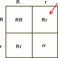 Having round seeds is dominant (R), while having wrinkled seeds is a recessive trait (r) in pea plants. The Punnett square below shows a cross between two pea plants and the potential allele combinations of their offspring. What is the phenotype (what you observe) for the allele combination in the top right corner?