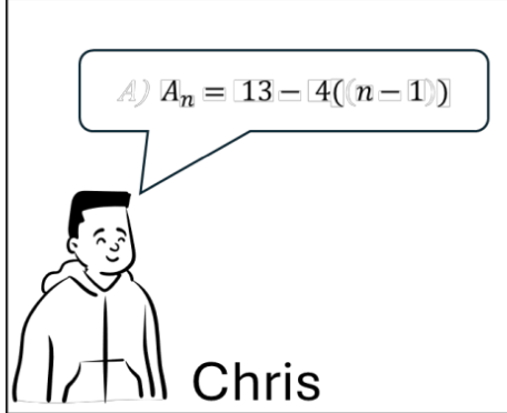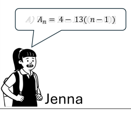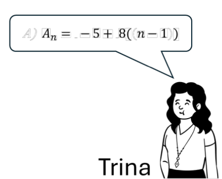 A group of students studied the pattern. Each student has developed an equation that would be used to find the nth term in the sequence. Which student has an equation that works?