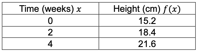 Sarah bought a starter tomato plant and is now checking the growth of her tomato plant for several weeks. She measures the height of the plant at different times and records the data in the table below.