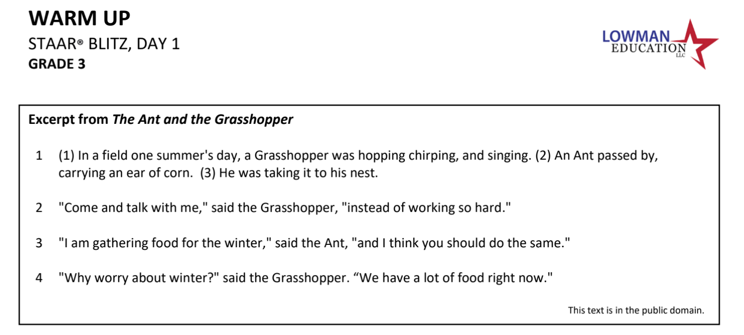 STAAR Blitz 1 Warm Up