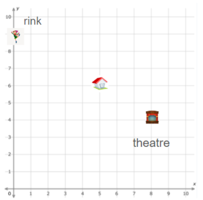 Both Hank and his sister leave the house going to two different places. Their house is 3 blocks east and then 2 blocks south from his house to the movie theater and 5 blocks west then 3 blocks north from the skating rink.
