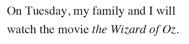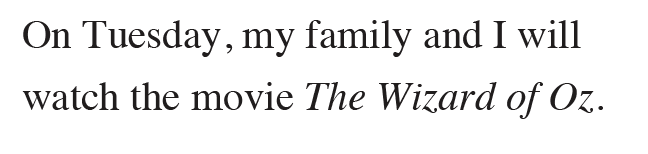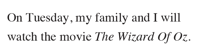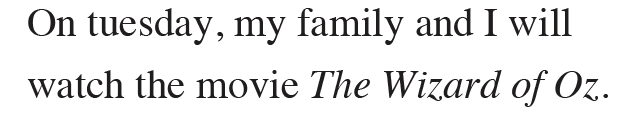 on tuesday, my family and i will watch the movie the wizard of oz.