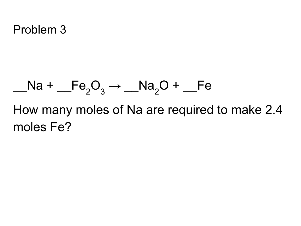 __________Na + __________Fe2O3 --> __________Na2O + __________Fe