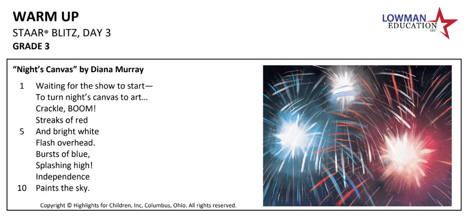 Streaks of redAnd bright whiteFlash overhead.Bursts of blue,Splashing high!