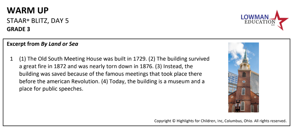 STAAR Blitz Day 5 Warm Up