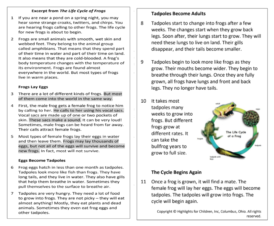 Which highlighted sentence from “Frogs Lay Eggs” supports the answer in Part A? Select your answer in the text.