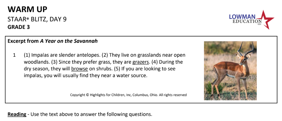 STAAR Blitz Day 9 Warm Up