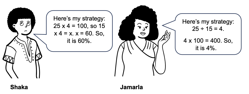 Jamarla and Shaka each found the percent of 15 out of 25.