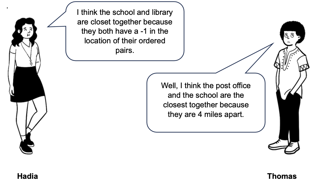 Hadia and Thomas are creating a map using a coordinate plane that shows the locations of a