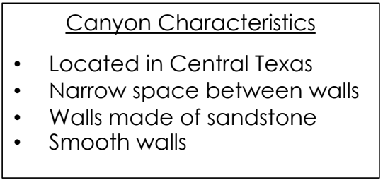 While on a field trip, students observed a canyon and wrote the following list of observations.