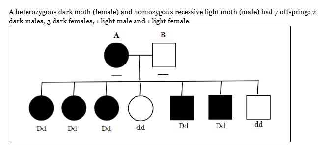 Using the pedigree above, what is the correct genotype of moth B.