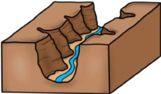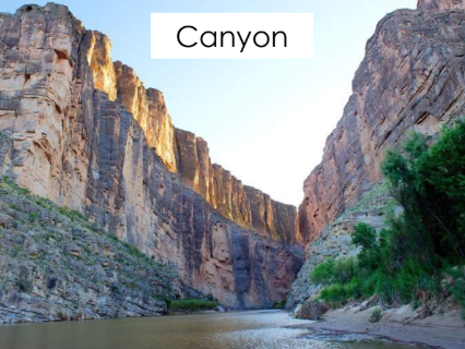 Formed when a river weathers rock and erodes sediments over millions of years | arrow_right_alt | |