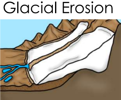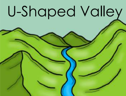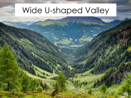 Formed when a large, wide glacier slowly moves through the area, weathering rock and eroding sediments | arrow_right_alt | |