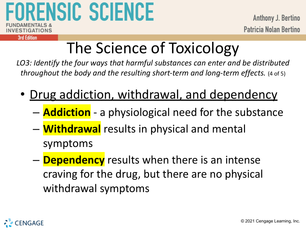 dependency | arrow_right_alt | physical and mental symptoms that arise when abstaining from a drug |