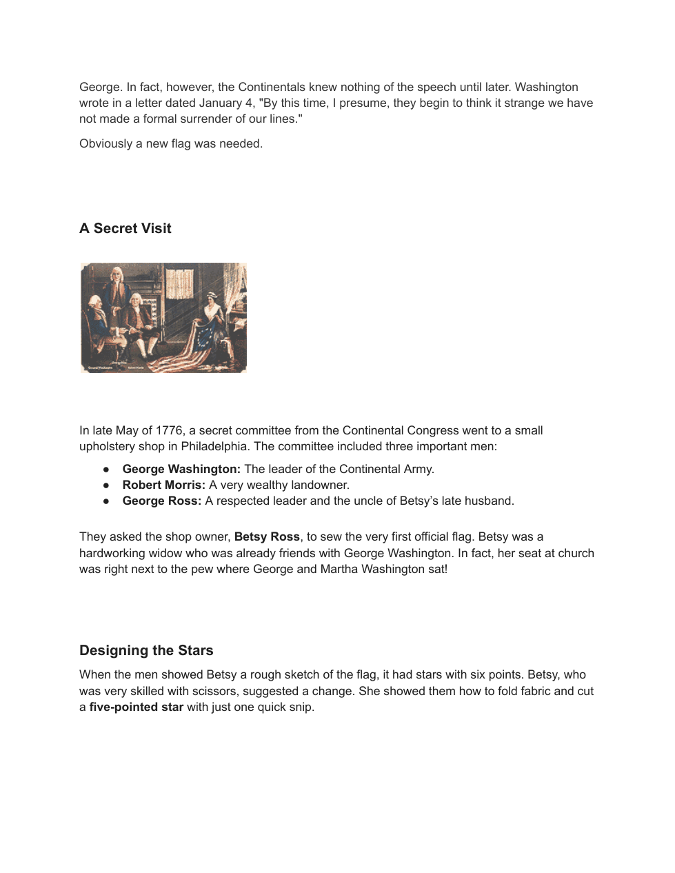 Who were the three members of the secret committee from the Continental Congress that asked Betsy Ross to sew the first flag?
